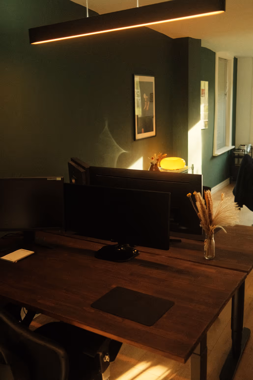 Kleine Workshops kannst du ohne Probleme in unserem Meetingbereich am Empfang durchführen. Wenn du einen ganzen Tisch mietest, steht dir zusätzlich die Abnahme Suite zur Verfügung, die sich hervorragend für professionelle Kunden-Abnahmen oder kleinere Präsentationen eignet.